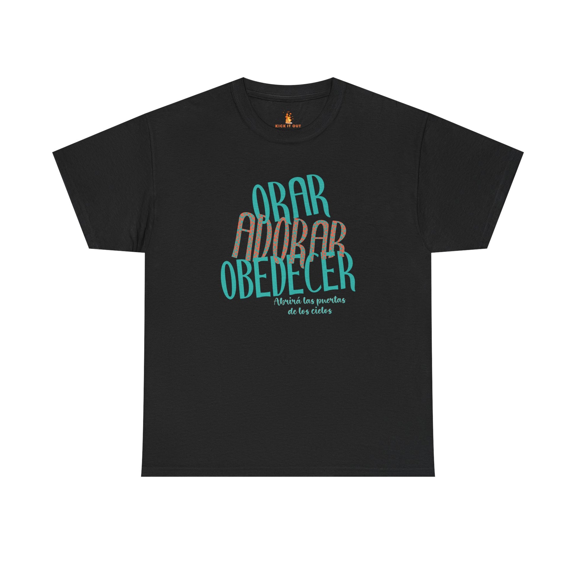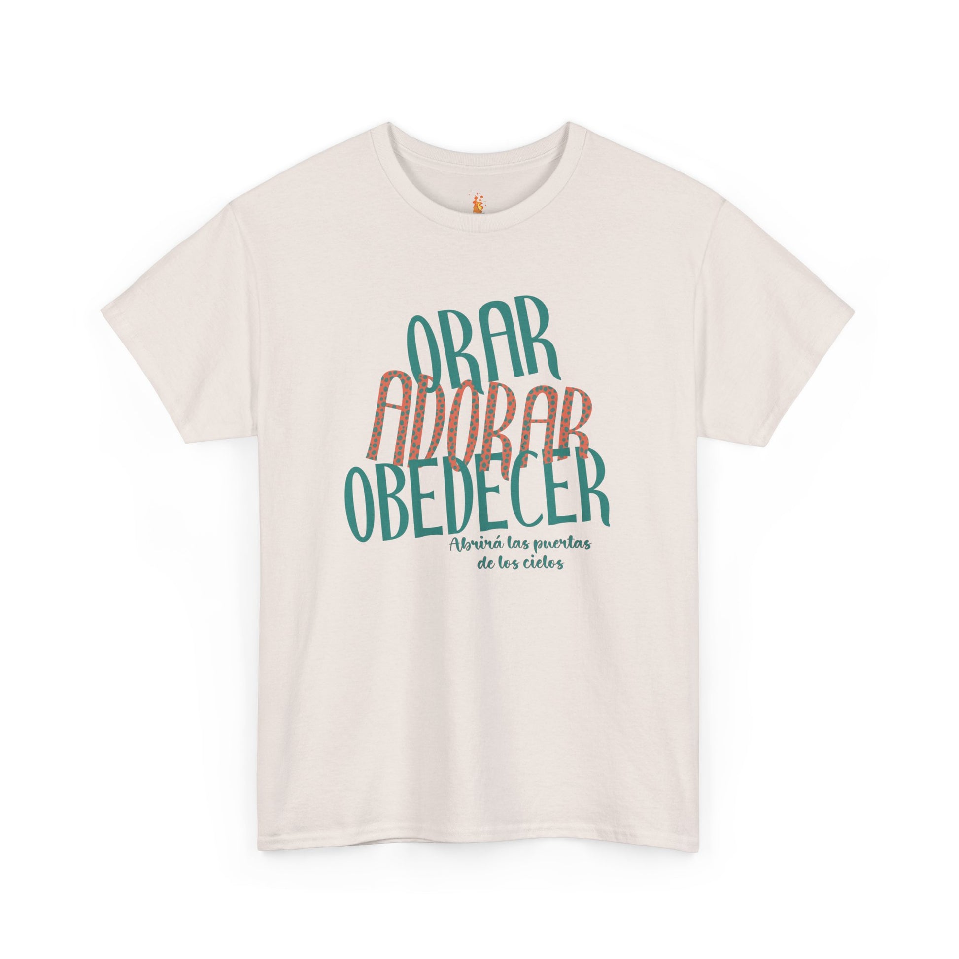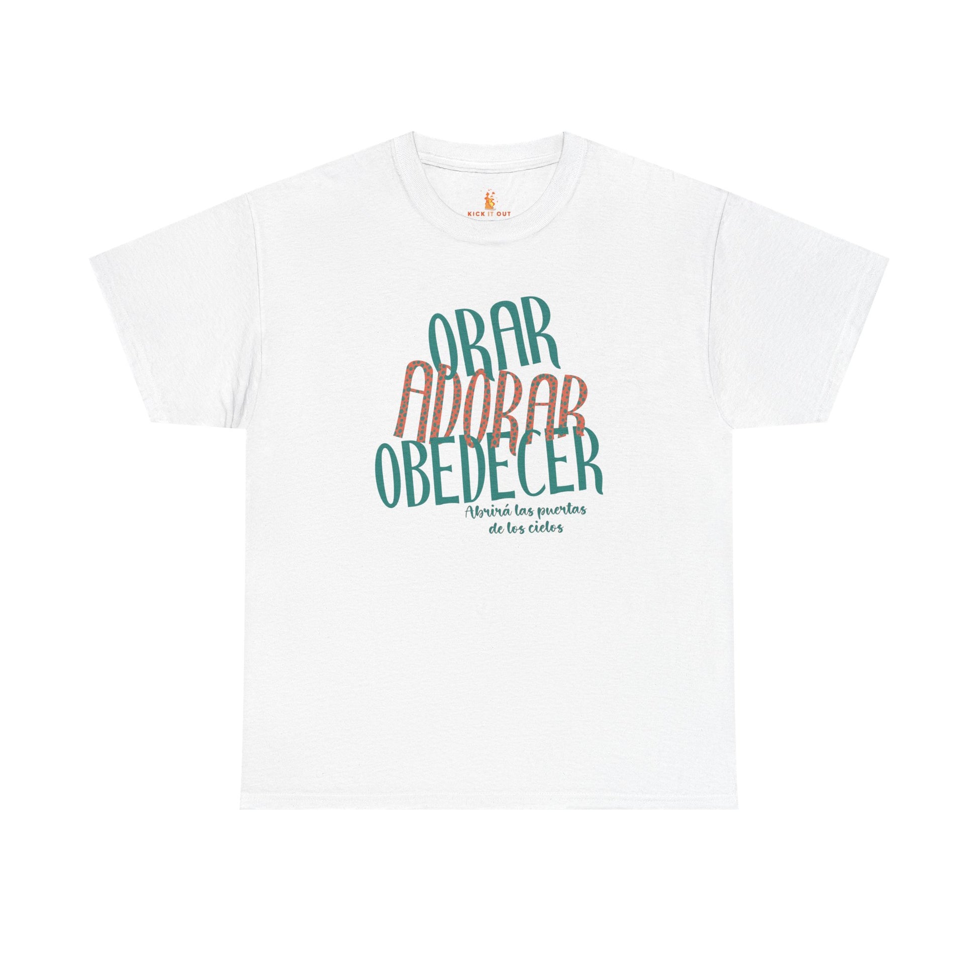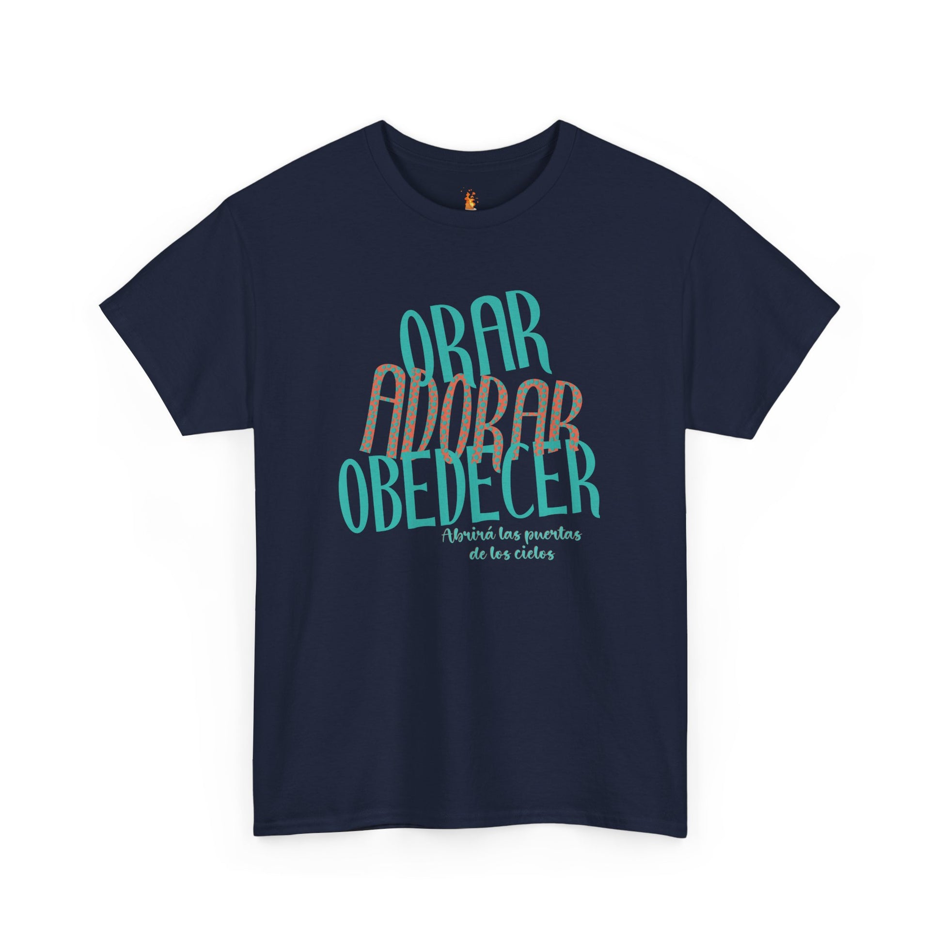 Lleva tu fe contigo y comparte un mensaje poderoso con nuestra camiseta "Orar, Adorar, Obedecer". Con un diseño inspirador y letras llamativas, esta camiseta es más que una prenda de vestir; es una declaración de principios para tu vida cristiana y una forma visual de sembrar la semilla del evangelio.