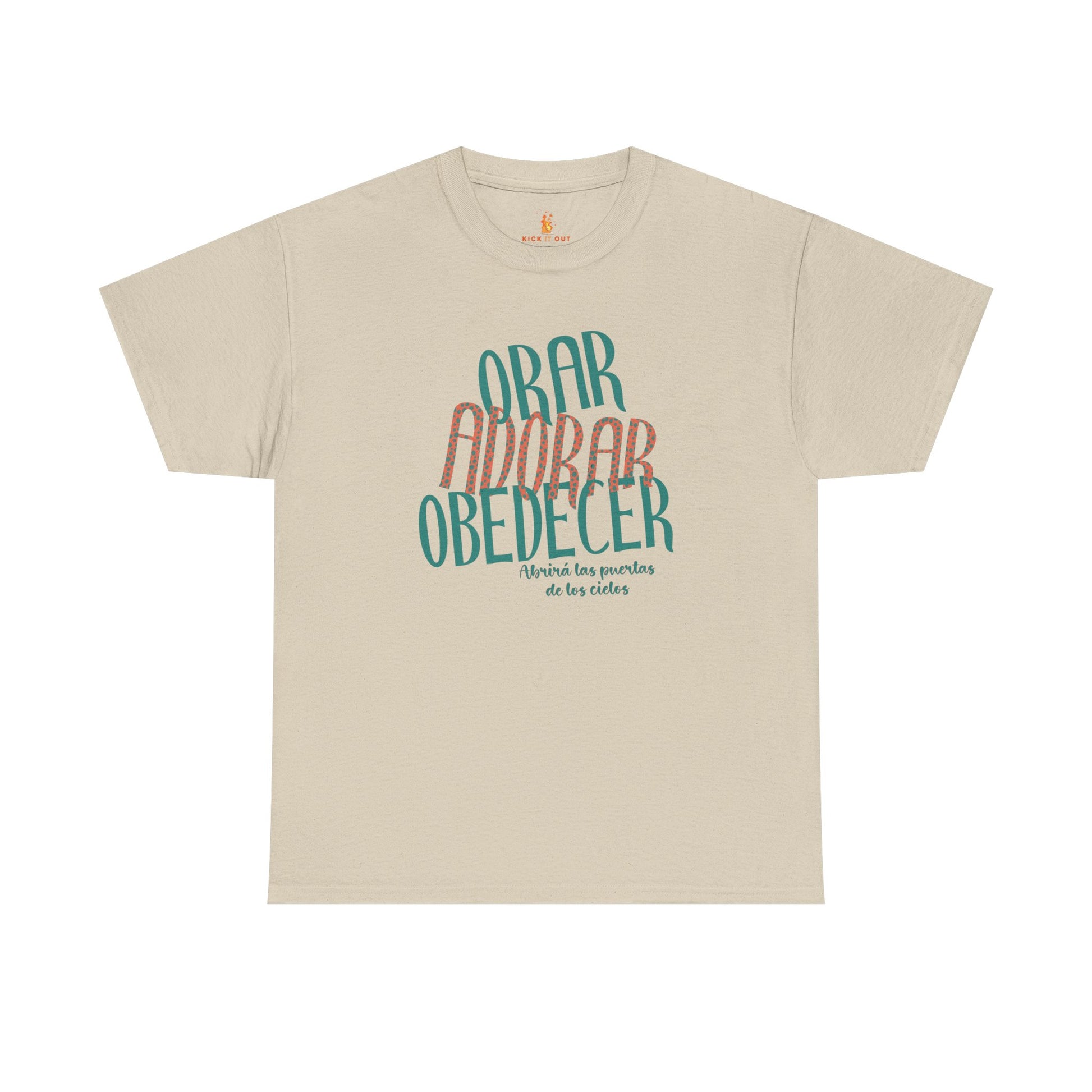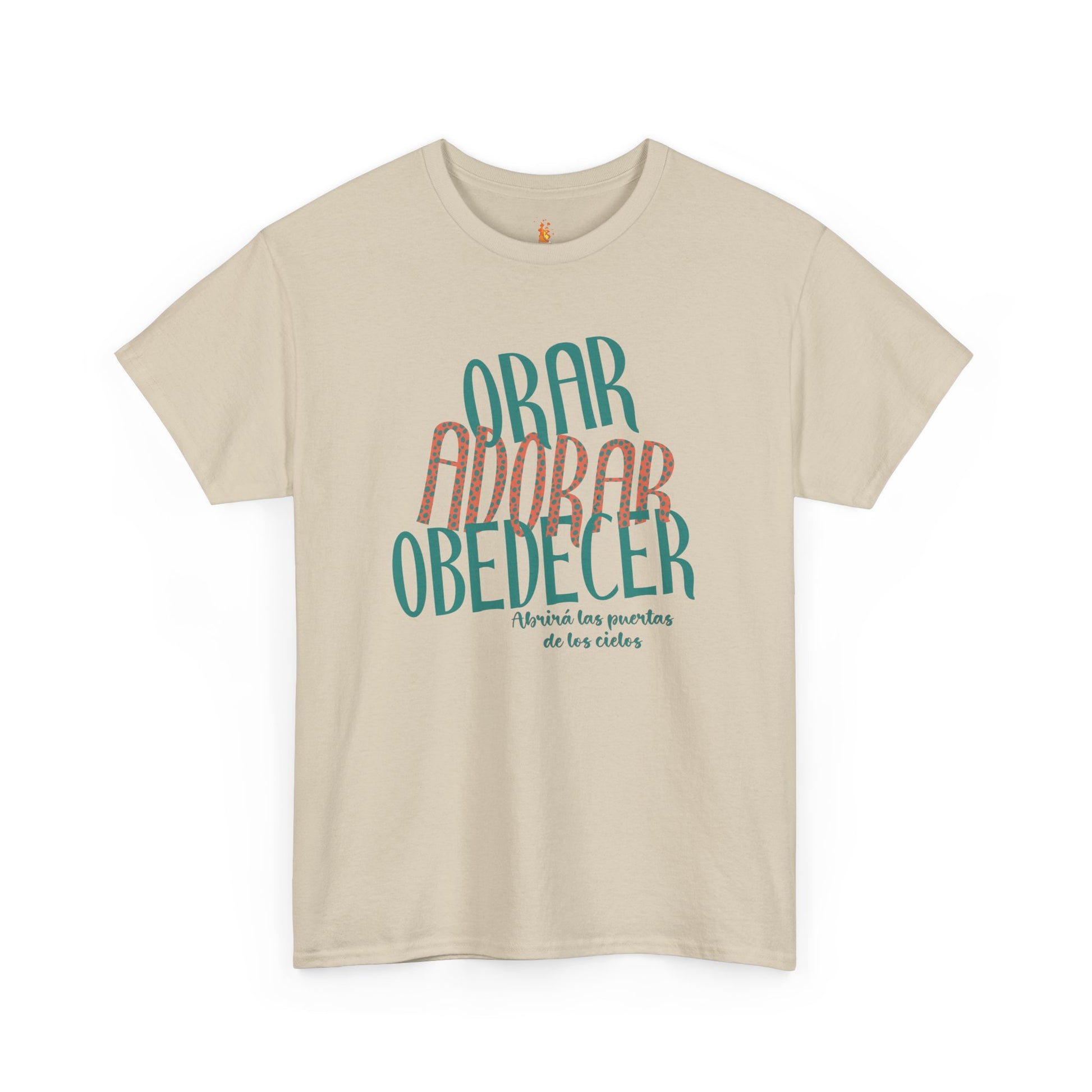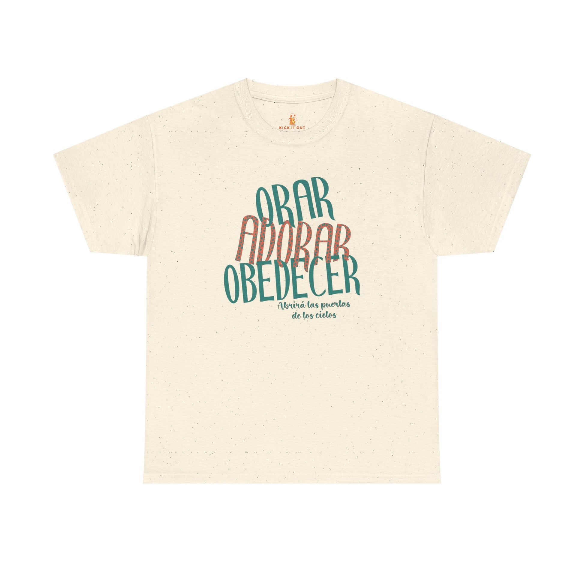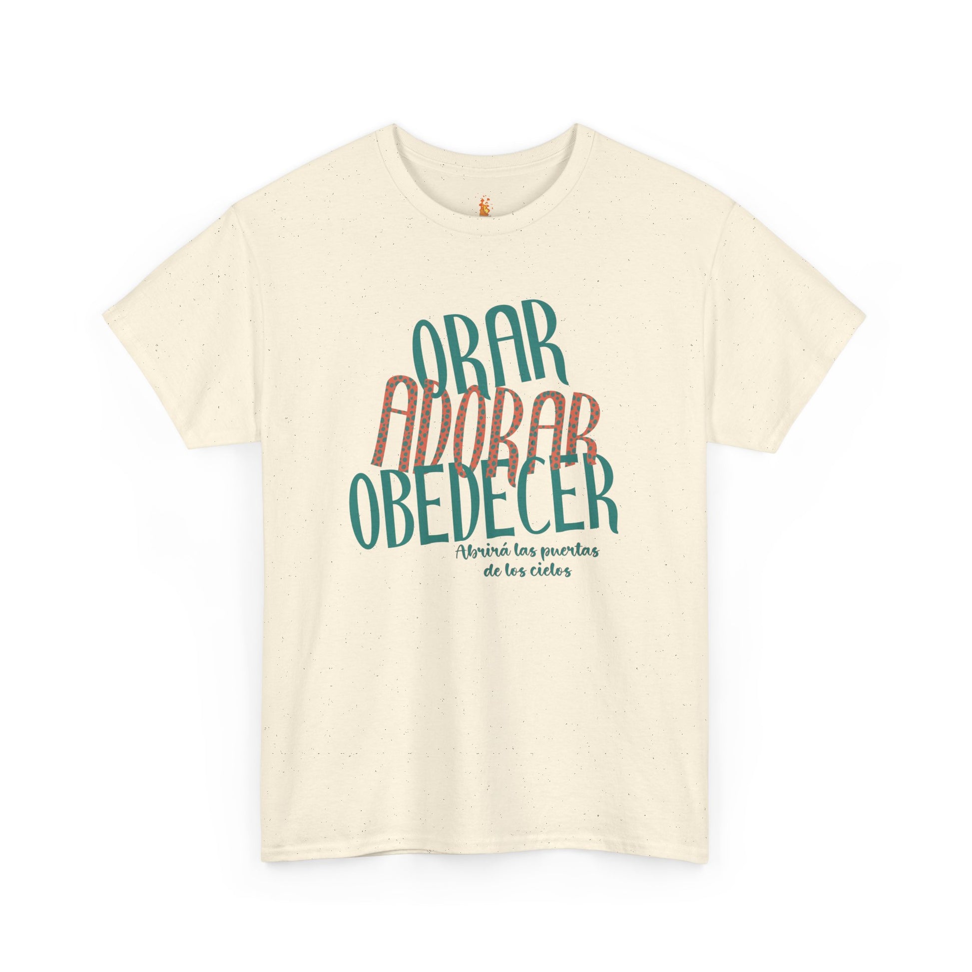 Lleva tu fe contigo y comparte un mensaje poderoso con nuestra camiseta "Orar, Adorar, Obedecer". Con un diseño inspirador y letras llamativas, esta camiseta es más que una prenda de vestir; es una declaración de principios para tu vida cristiana y una forma visual de sembrar la semilla del evangelio.